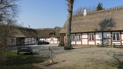 Tåstrup er en lille klynge af gårde, hvor man kan besøge et fredet stuehus fra 1775, Trines Hus.