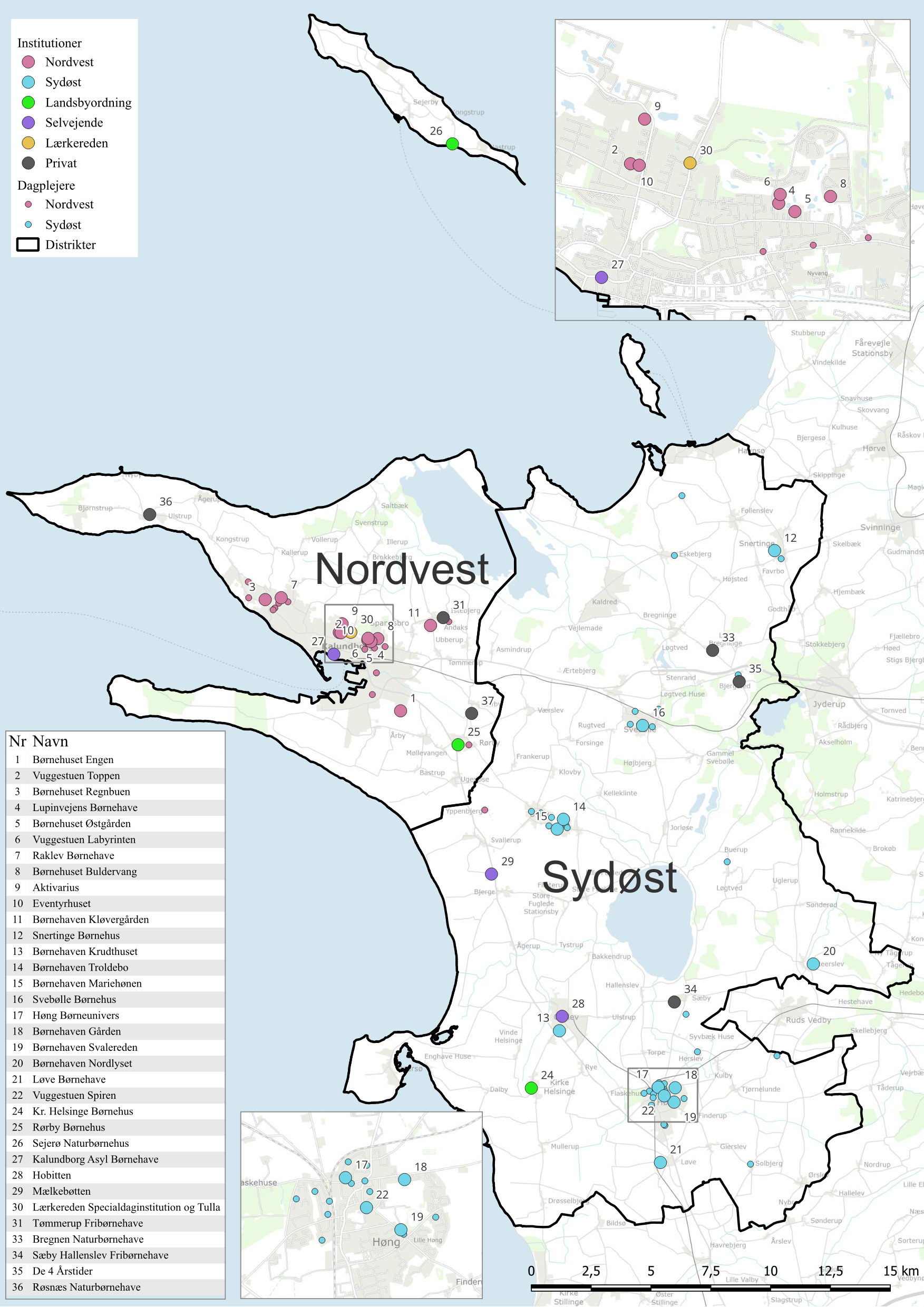 Oversigt over dagpleje, daginstitutioner og private pasningsordninger